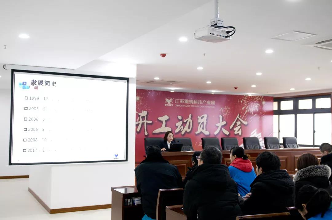 一元復(fù)始,萬象更新。2019年2月15日上午8時(shí)30分,集團(tuán)與江蘇雅泰科技產(chǎn)業(yè)園分別在上海與宿遷兩地順利召開了新春開工動(dòng)員大會(huì),董事長(zhǎng)陳康富攜集團(tuán)公司總裁班子成員向參會(huì)的各部門各車間員工拜年,向大家送去新春祝福和美好祝愿。