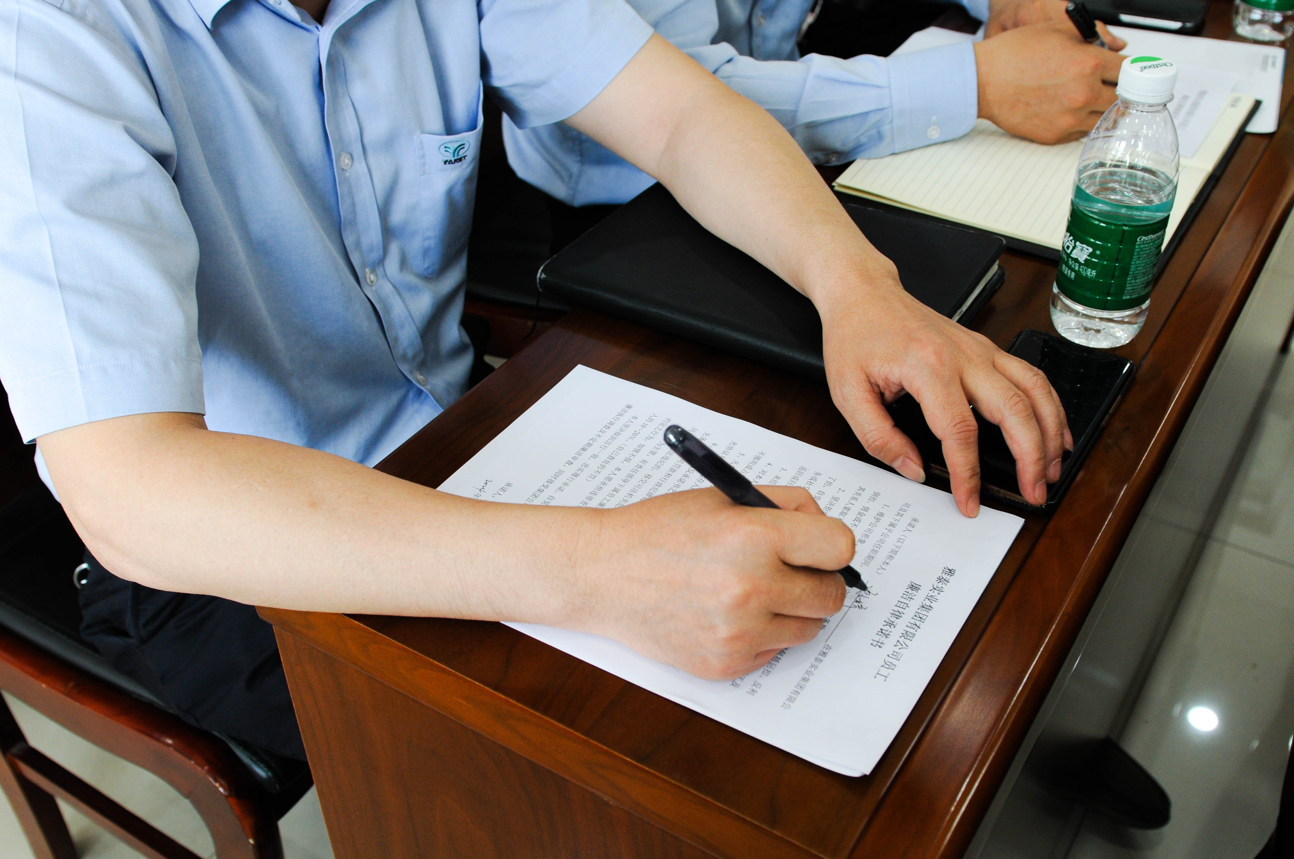 會(huì)議最后,進(jìn)行共同進(jìn)行簽定廉潔自律承諾書儀式,每位同志都鄭重的在廉潔自律承諾書上寫上自己的名字,承諾做一名“干凈清廉”的雅泰人,承諾在工作中堅(jiān)守紀(jì)律底線,干干凈凈做人、清清白白做事,形成“風(fēng)清氣正”的企業(yè)氛圍!