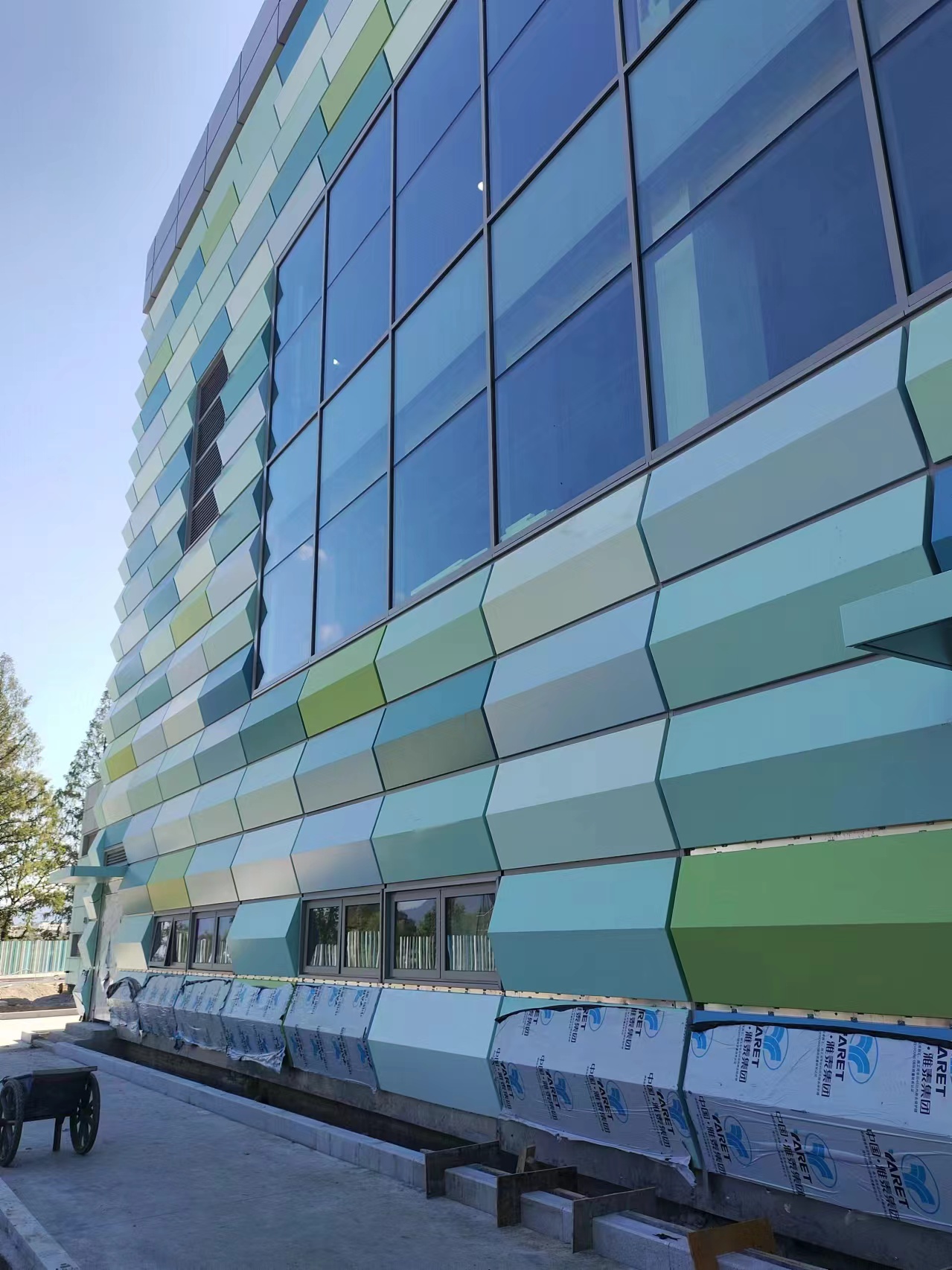 外立面采用了“竹”設(shè)計(jì)理念,使用了雅泰提供的大片綠色鋁單板幕墻,突出建筑的水平延展,給人以建筑與山川延綿相連的感受,將建筑融于自然。